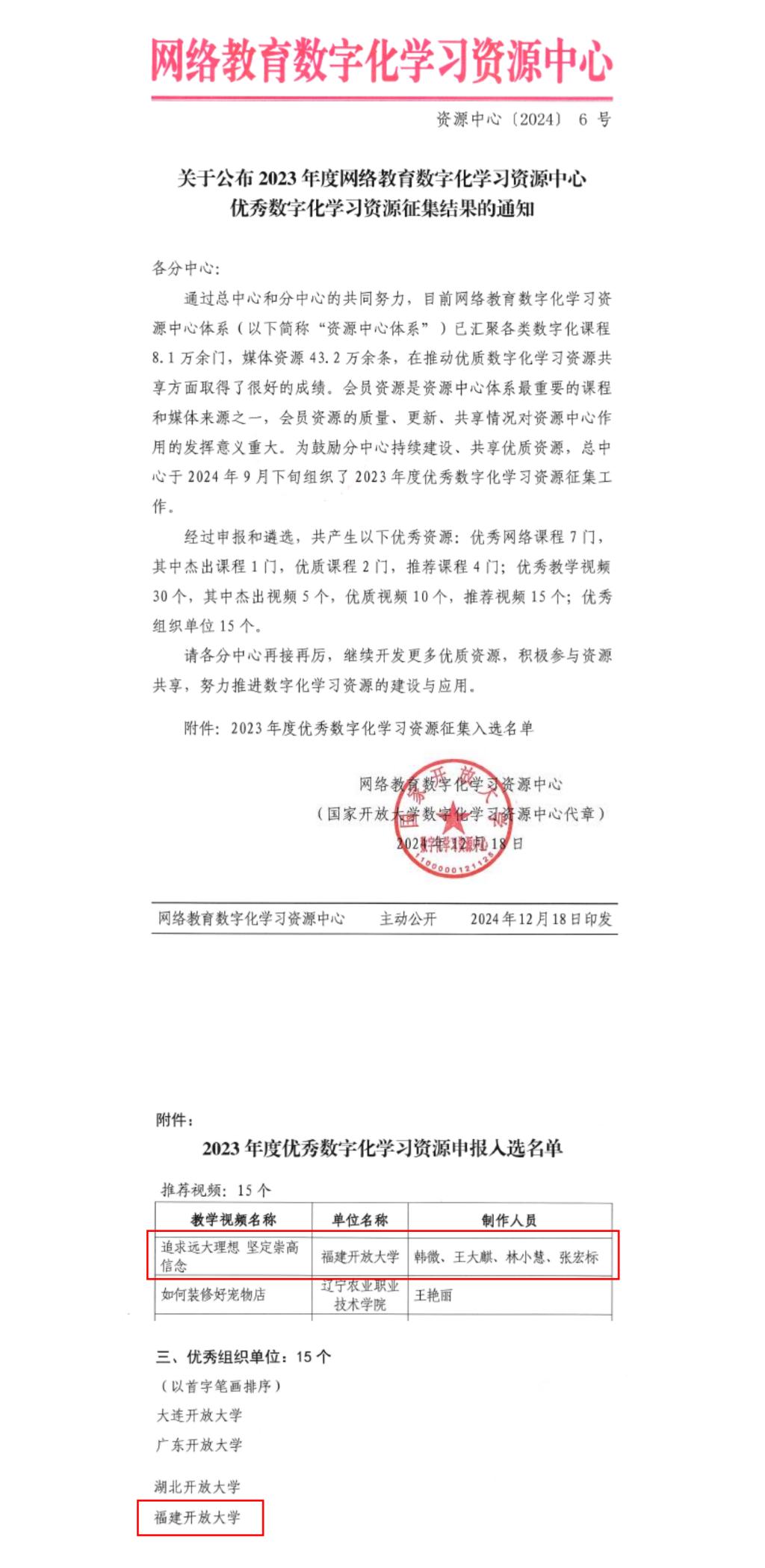 近年来,学校以优质资源建设为抓手,积极跟踪教学需求,着力推进优质数字化学习资源的建设与应用,制作的视频多次获得国家开放大学、省委教育工委举办的学习资源相关竞赛奖项。