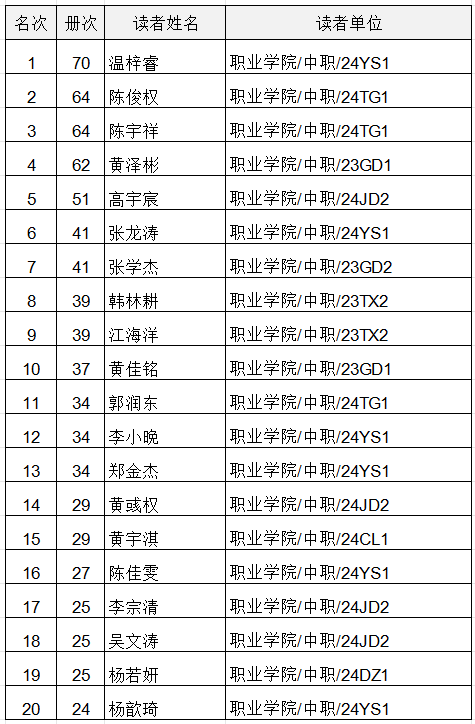 “立身以立学为先,立学以读书为本。”此次评选出的“阅读之星”,凭借持之以恒的阅读习惯,展现出我校学子对知识的热切追求,为校园增添了浓郁的书香气息。希望他们发挥榜样力量,引领更多师生走进书海,在阅读中实现自我提升与成长。