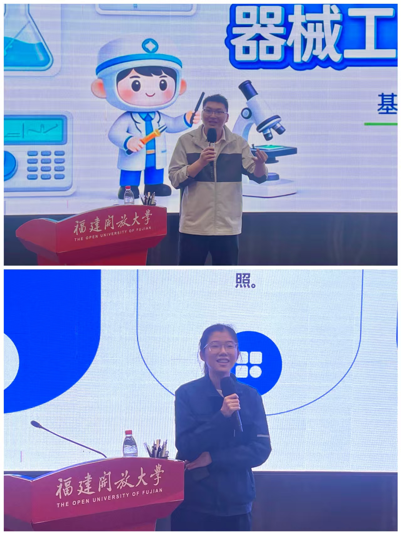 座谈会后,专题讲座正式开讲。本次讲座特邀福建卫生职业技术学院钟伟雄副教授主讲,同时作为系党支部政治理论学习的重要内容,全体党员共同参与学习。讲座中,钟伟雄副教授以《战略性新兴产业与医疗器械工程师的成长之路》为题结合专业特点与职业发展规律,围绕学生成长成才、职业规划、技能提升等内容展开深入讲解。活动还邀请联办五年专优秀毕业生代表陈玉婷上台分享,交流在技能竞赛、专升本备考、职业规划、技能考证等方面的经验心得,以朋辈榜样力量带动全体学生崇德尚技,勤学笃行、全面发展。