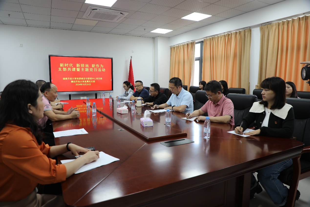为深入学习贯彻党的二十大和党的二十届三中全会精神,进一步推进支部“源自初心、资力发展”党建品牌建设,强化党支部间优势互补、双融双促作用,10月25日,资源建设与管理中心党支部组织中心全体员工前往莆田,与莆田开放大学直属党支部共同开展支部共建暨“新时代、新担当、新作为”主题党日活动。