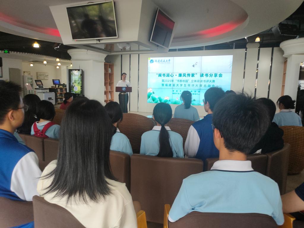 书评大赛启动,青年视角对话时代。2025年“书香校园”立体阅读书评大赛暨福建省大学生书评大赛同步启动,面向全省办学体系师生征集书评作品。活动强调“书评是青年对话时代的窗口”,应“立足本土、关照当下、放眼未来”,青年师生要用文字传递对闽版好书与廉洁文化的思考。2024年福建省书评大赛二等奖获得者林鑫梅同学现场分享创作经验与成长感悟。